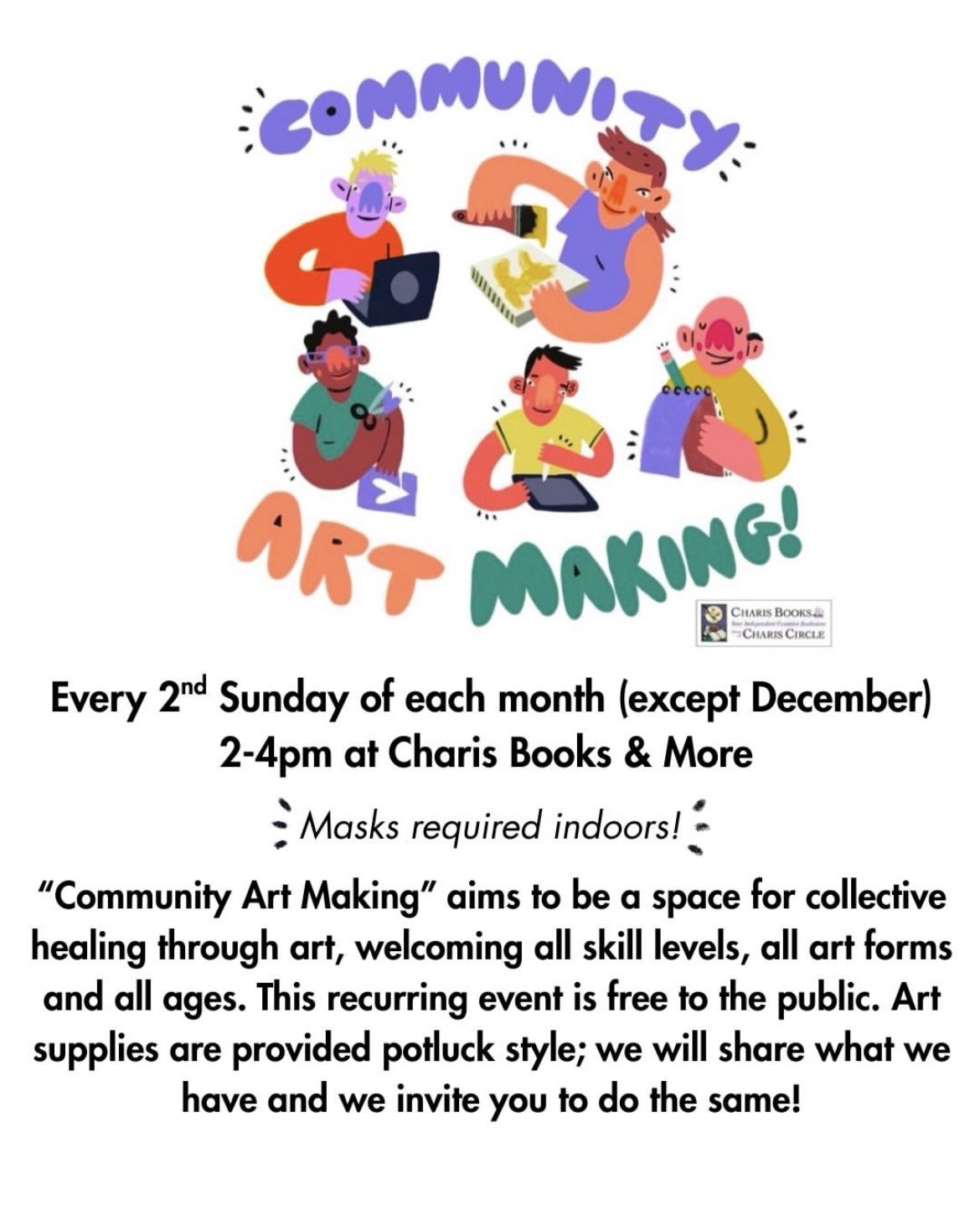 The next “Community Art Making” will be on March 8th, 2-4pm at Charis Books in Decatur, GA